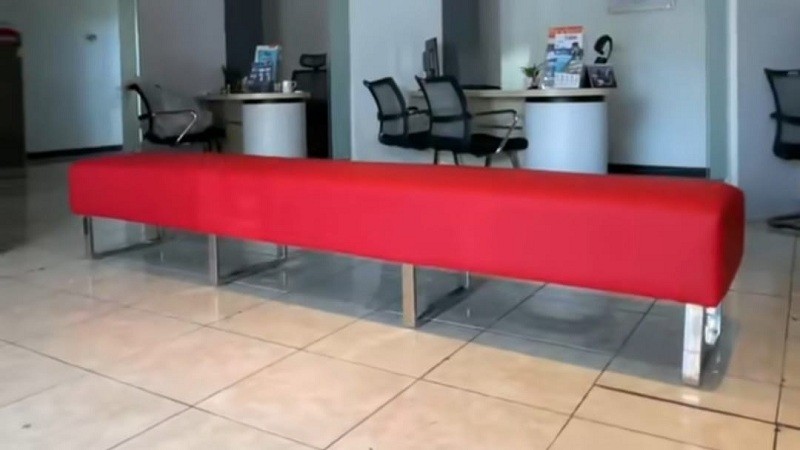 Inspirasi desain kursi tamu kantor simpel berikutnya seperti yang ditunjukkan akun TikTok alatkantor_cahayamustika. Desainnya memanjang simpel tanpa sandaran punggung maupun tangan. Bahannya dari busa berkualitas yang terasa empuk saat diduduki maupun ditekan dengan tangan. Kursi ini juga menggunakan lapisan oscar yang terasa halus di tangan dan mudah dibersihkan dengan disinfektan.
